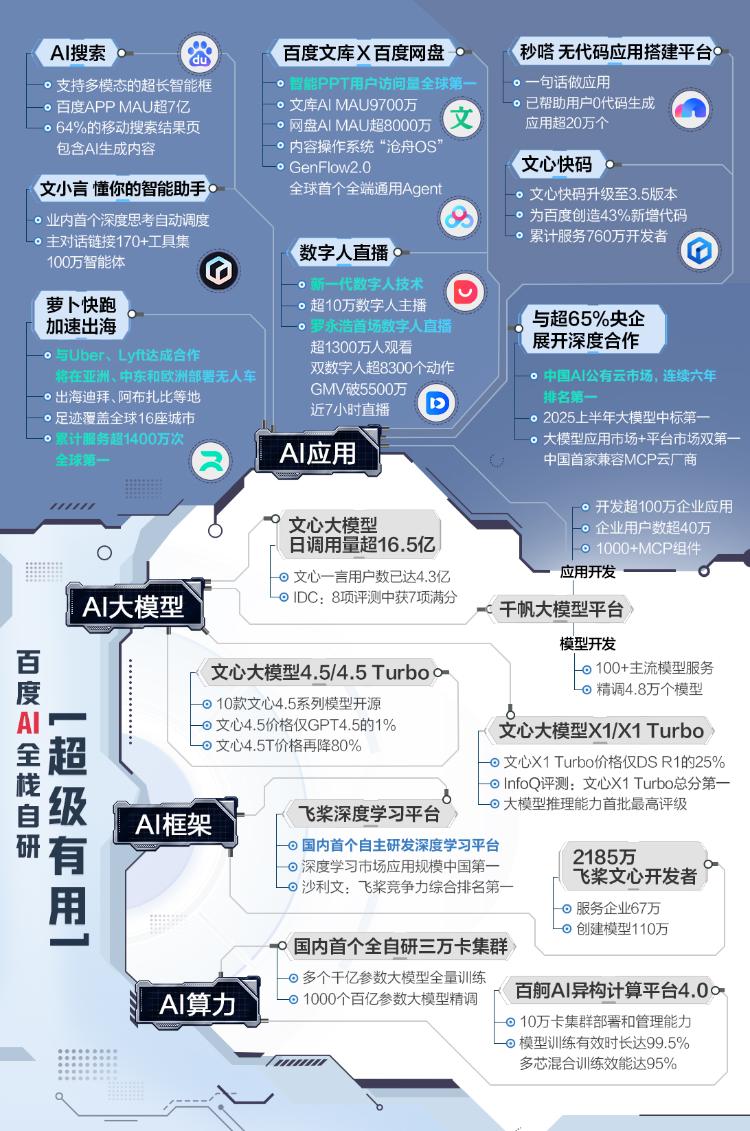 海报新闻记者张徐报告说,8月20日晚上,百度发布了2025年财务报告的第二季度,表明季度总收入为327亿元人民币,百度的主要收入为263亿元人民币,与百度的主要净利润为740亿YUAN,年龄增长了35%的年度35%。 AI敦促包括智能云在内的新的AI业务增长了强烈的增长,首次超过100亿元人民币,增长了34%。 “第二季度,由于我们不断增强了AI堆叠功能以及端到端的AI产品和解决方案,因此Smart Cloud业务实现了健康的增长。”百度创始人罗宾·李(Robin Li)表示,在本季度,百度(Baidu)加快了人工智能的变化和原始跑步的全球化过程。 “ Baidu始终致力于具有最低潜在价值创造的新PatsJust AI,这使我们的技术和变革具有最有意义,最长期的效果。”Arch加速了AI的转变,从搜索框中实现了全面的变化,搜索结果页面以寻求生态学。移动搜索结果的AI形成页面的结构化,明智和多模式的AI的财务报告,每月积极地使用出BAID音频和视频模型“ Baidu Steam Engine”,这是通过不同版本的不同版本的不同创意需求以及通过不同设计的不同创造性需求的压力,并进一步增强了搜索,内容,内容,业务,业务,业务,其他生态学的多种多样的体验。自今年年初以来,Raw Carrot种族加速了其全球化进程,并最近在Uber和Lyft达成了战略合作,并将在亚洲,中东和欧洲将无人居住的车辆放置。目前,Radish Rapid在全球右手Robotaxi市场中处于领先地位,最近扩大了在香港连续三次试验的区域。根据财务报告,G的数量Lobal Travel Services在第二季度超过220万,每年增加148%; 8月,全球服务的总数超过1400万;全球旅行服务的痕迹涵盖了全球16个城市。据报道,百度智能云在第二季度已经显着增长。 “ IDC的中国AI公共云服务,2024年”报告显示,百度智能云连续六年连续排名第一。在8月20日发布的最新IDC报告中,BAIDU智能云先于大型平台模型市场。今年6月,Wenxin Mockup 4.5系列旋转,并发布了10个具有各种架构和尺寸的新车型。企业和开发人员可以通过百度智能云Qianfan模型平台调用Wenxin 4.5 API服务系列。